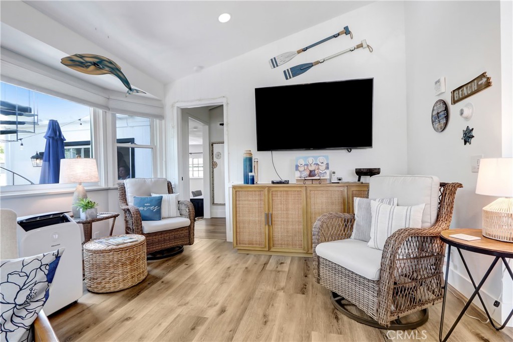 Welcome home to this stunning "Beach Cottage Beauty" located in the charming waterfront community of Bayside Village in Newport Beach. You'll fall in love with the bright and contemporary open floor plan that features water views from the dining room, living room, and office area. The beautiful kitchen boasts a gorgeous quartz dining counter and a wood top counter coffee bar. The main bedroom features high ceilings, a modern upgraded bathroom, and a private patio accessible from both the bedroom and living room. The second bedroom, also with its own updated bathroom, has a separate entrance and can be closed off from the rest of the home for privacy. This one of a kind gem has been meticulously maintained and updated with high end upgrades including custom window coverings, retractable screen doors, a brand-new roof, new central heater, reverse osmosis water filtration system, and a tankless water heater. Enjoy the covered carport off the exterior laundry room (with a stackable washer & dryer) and there is a second parking space off the roomy front porch providing ample parking. Venture up the exterior spiral staircase to the viewing deck to relax and enjoy panoramic views. This prime location home is steps away from the community clubhouse, complete with a swimming pool, private beach, and firepit. This home is in close proximity to the Dunes, Marina Boat Docks, Balboa Island, and Fashion Island's restaurants; everything is all within minutes away. Embrace the essence of resort style living at the beach in this turnkey residence. You can make this one your forever primary home or your forever vacation home. Make this quintessential beach home your dream home today!
